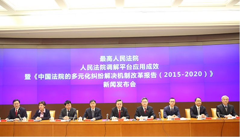 2月20日上午,中国侨联等六部委参加最高人民法院举行的人民法院调解平台应用成效暨《中国法院的多元化纠纷解决机制改革报告(2015-2020)》新闻发布会。