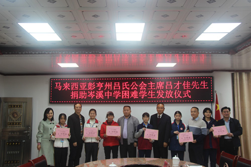 阳春三月,又到“儿童散学归来早,忙趁东风放纸鸢”的季节,这是祖籍广西梧州岑溪侨居马来西亚彭亨州的吕才佳先生与学子相见的日子。多年来,他一直资助广东信宜市绿湖小学15名小学生,贵子中学10名初中生、广西岑溪中学5名高中生,广西民族大学6名大学生。其中小学初中生每人每学期人民币1000元,高中生大学生每人每学期马币2000元(折合人民币3170元)。共计每年资助人民币10多万元。今年,疫情阻断了才佳先生漂洋过海的路,但阻不断他资助祖国品学兼优贫困学子的爱心,通过委托家乡侨联向这批学子发放助学金。