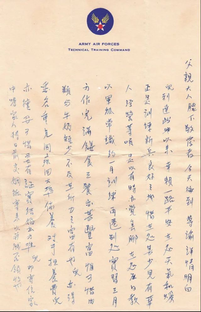 “驼峰航线”自1942年5月至1945年9月,历时3年零5个月时间,共坠毁飞机609架,平均每月15架,牺牲和失踪的飞行员1579人,成为世界战争空运史上持续时间最长、条件最艰苦、付出代价最大、最悲壮的空运航线。飞虎队员的军旅生活鲜为人知。一封飞虎队员寄给远在台山的老父亲家书,揭开了他们的军旅生活之谜。书信原文如下: