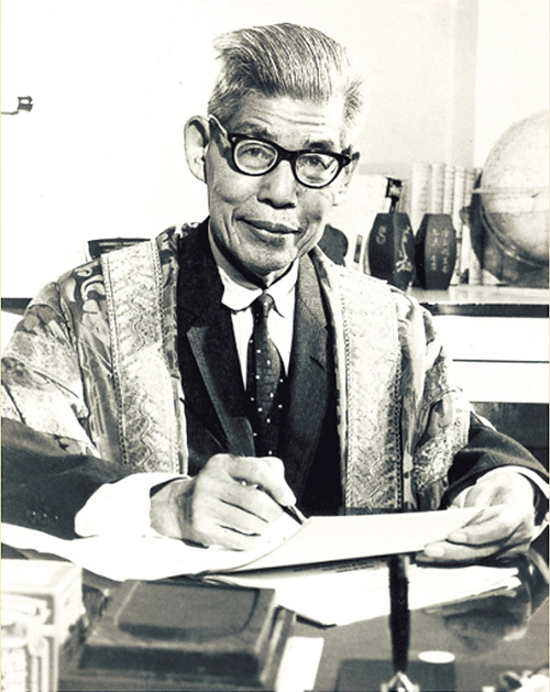 李光前先生任新加坡大学首任校长,图为李光前在新加坡大学办公
