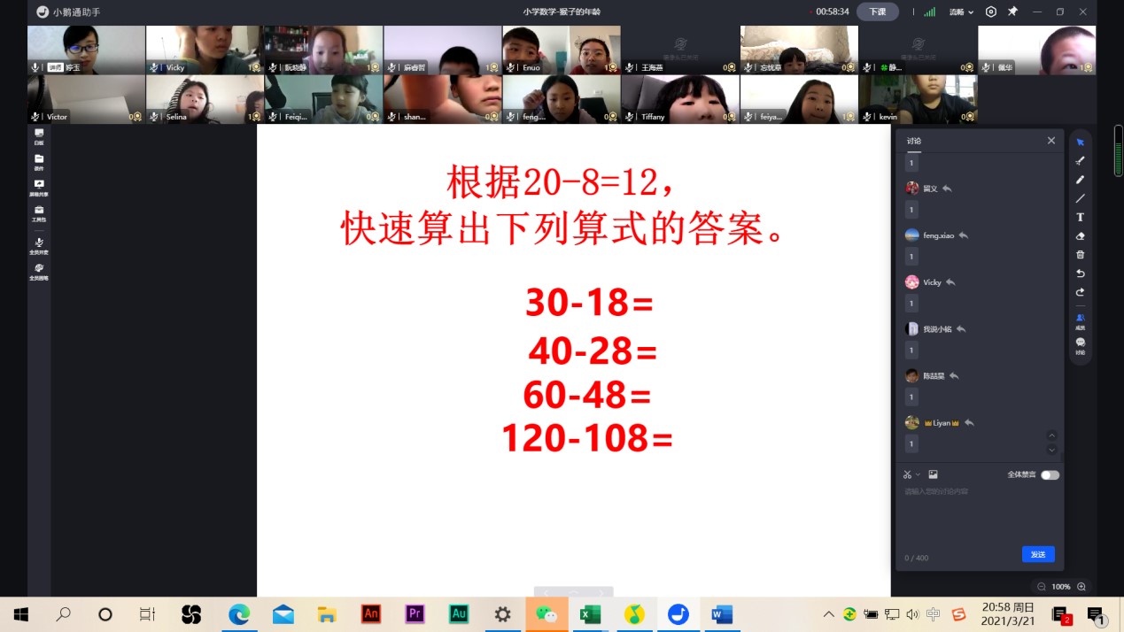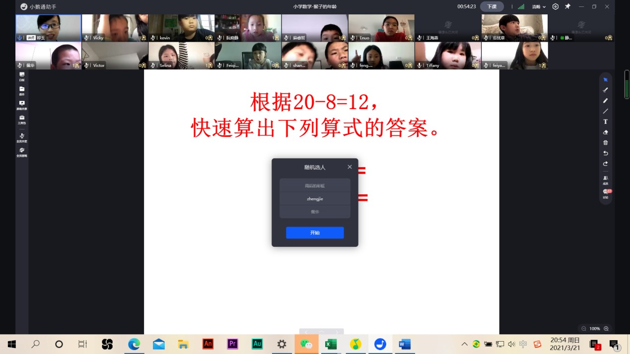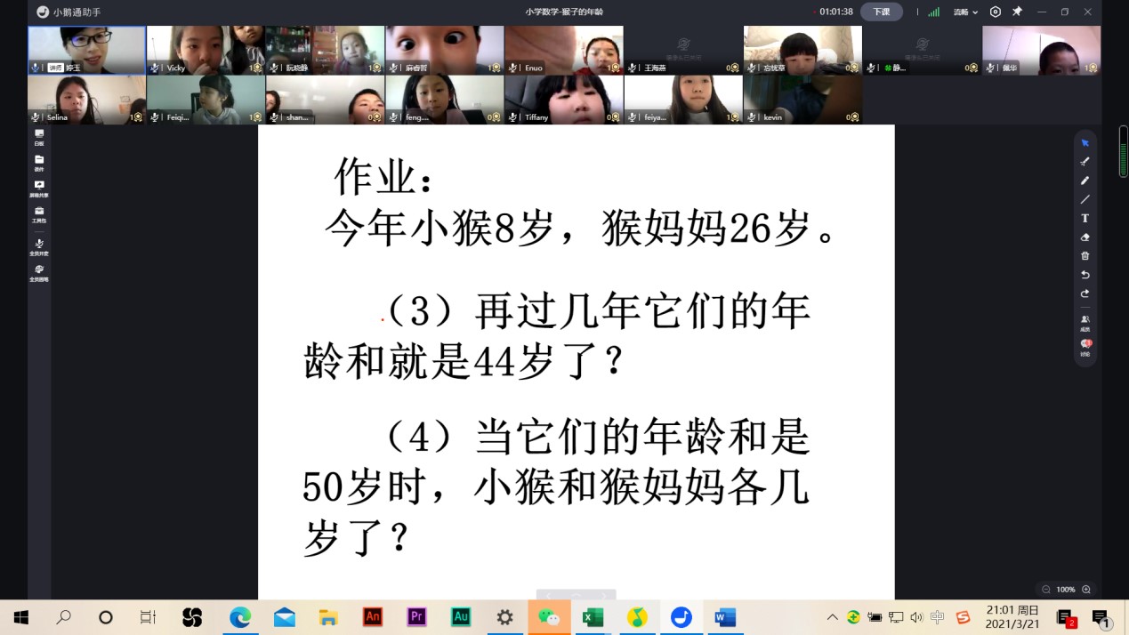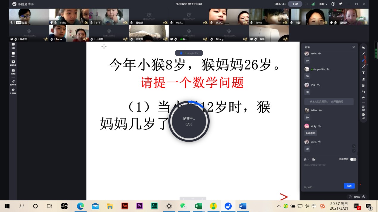 北京时间2021年3月21日晚上八点,浙江华侨网络学院2021年春季课程小学数学之“猴子的年龄”于线上正式开播。本次课程由陈加仓名师工作室李婷玉老师执教,受到孩子家长们的热烈欢迎。