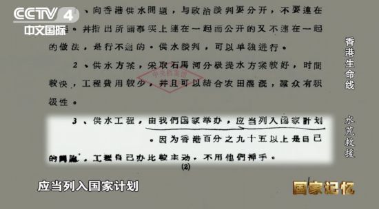 图:周恩来总理批示,“供水工程,由我们国家举办,应当列入国家计划。因为香港百分之九十五以上是自己的同胞。”现存于中央档案馆