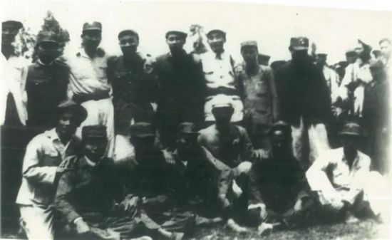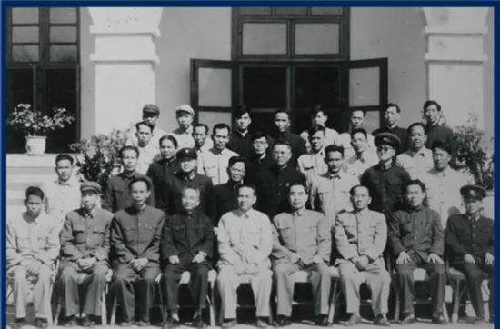 1960年周恩来总理与海南党政军领导合影。第一排左起:赵光炬、陈青山、魏南金、肖焕辉、林李明、周恩来、庄田、杨泽江。