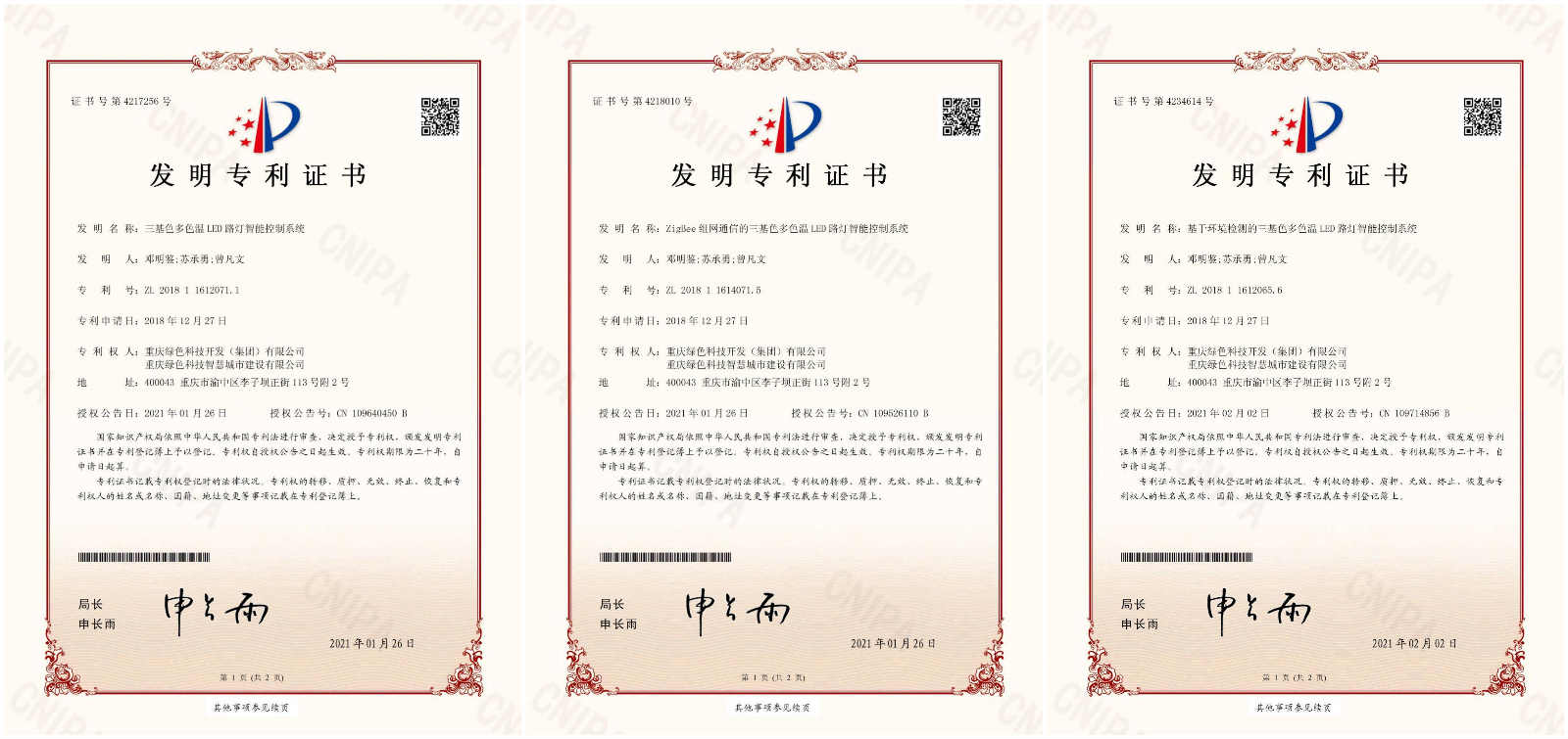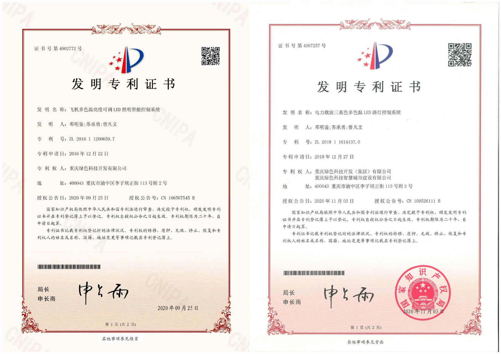 近日,作为国家高新技术企业之一的侨资企业——重庆绿色科技开发(集团)有限公司喜获5件国家发明专利:《飞机多色温亮度可调LED照明智能控制系统》《电力载波三基色多色温LED路灯控制系统》《三基色多色温LED路灯智能控制系统》《ZigBee组网通信的三基色多色温LED路灯智能控制系统》《基于环境检测的三基色多色温LED路灯智能控制系统》。
