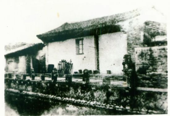 图左:谢文锦(后排右一)与俞秀松、罗亦农等人在上海外国语学社学习期间的合影;图右:外国语学社外景