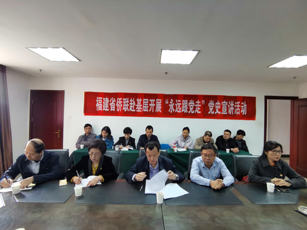 在“永远跟党走”的党史宣讲会上,福建省侨联党组书记、主席陈式海作了题为“深刻认识华侨精神的丰富内涵和重要意义”的党课,从为什么要弘扬华侨精神、华侨精神的内涵是什么、如何弘扬华侨精神等3个方面,解读习近平总书记关于侨务工作重要论述,再现老一辈华侨的爱国奉献精神,提出新时代传承和弘扬华侨精神的思路举措,学党史、忆侨杰,进一步增强了党员们知史爱党、知史爱国的思想意识和行动自觉。