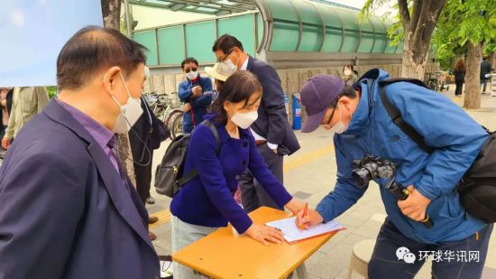 首尔当地市民纷纷赶来参与签名抗议活动以示声援