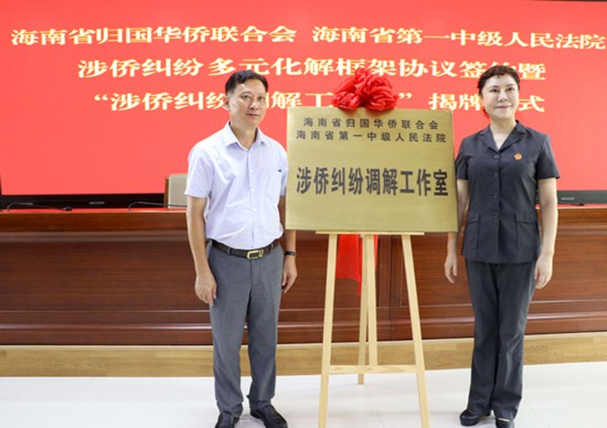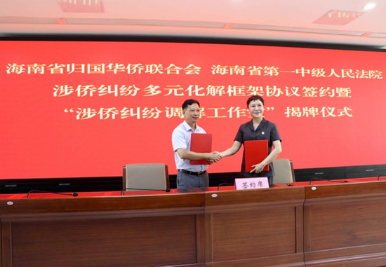根据省侨联与海南一中院签署的《涉侨纠纷多元化解框架协议》,除了在海南一中院设立涉侨纠纷调解工作室外,还在海南第一涉外民商事法庭设立涉侨案件立案服务窗口,专门对接办理涉侨案件,为涉侨诉讼提供便利服务。合作开展对外法治宣传,强化涉侨调解员的培训以及开设法院开放日,邀请侨胞侨商参观访问,促进法院对外交流合作等事项。