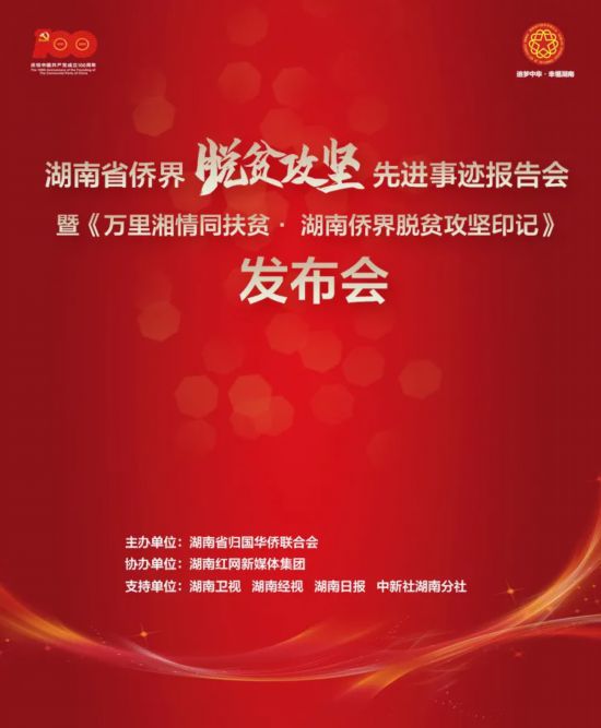 5月24日,湖南省侨界脱贫攻坚先进事迹报告会在红网演播厅举行,《万里湘情同扶贫湖南侨界脱贫攻坚印记》书籍同时发布。