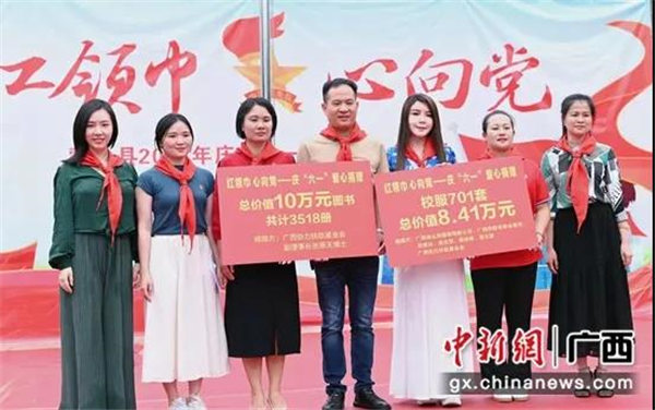 据悉,2020年以来,广西侨联青委会爱心人士连续为广西脱贫地区小学进行校服捐赠,本次捐赠价值84120元,广西协力扶助基金会图书捐赠价值100000元。