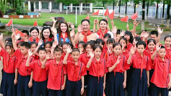 捐赠仪式上,广西埃么妮服装有限公司董事长埃么妮表示,本次设计的校服采用红色主色调,象征着阳光,正能量,希望同学们可以热爱学习,热爱生活,有梦想,敢实现,做好社会主义的建设者。