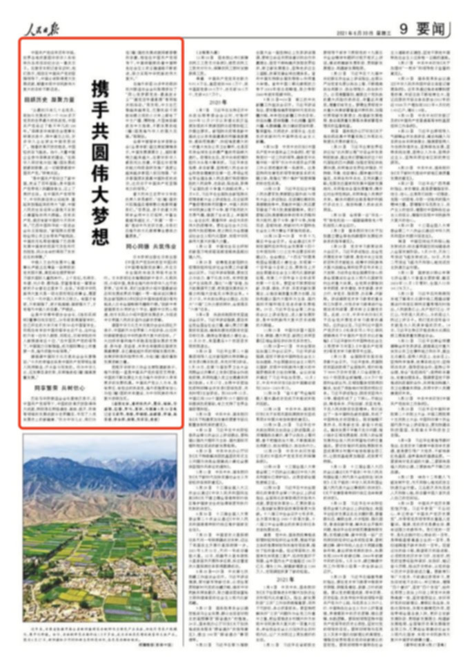 6月30日出版的《人民日报》刊发题为《携手共圆伟大梦想》文章,报道世界各地的爱国华侨华人畅谈共庆中国共产党成立100周年的感言感想,全文如下: