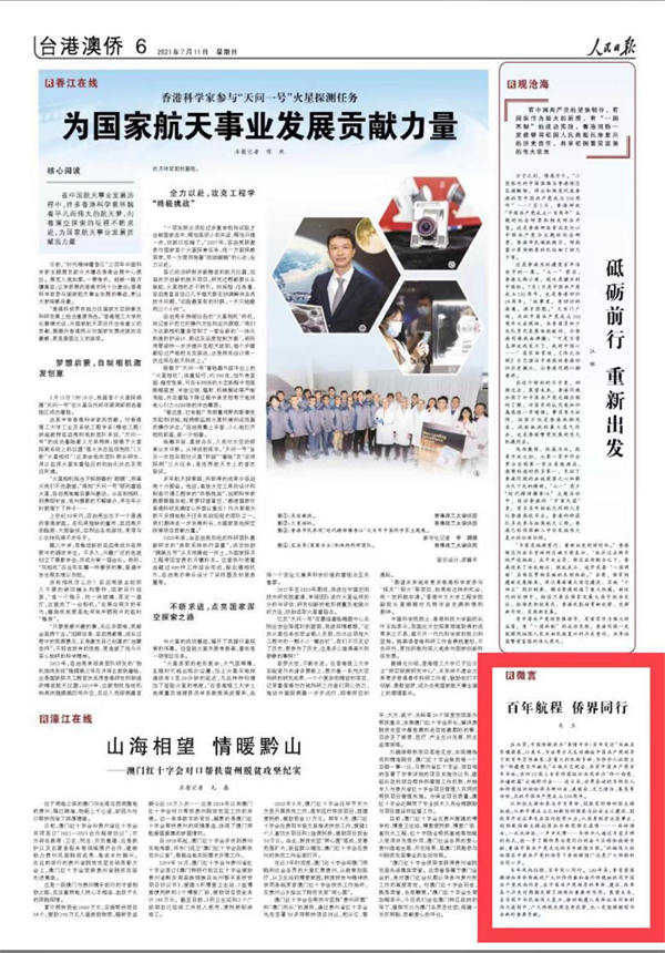 7月11日出版的《人民日报》刊发题为《百年航程 侨界同行》文章,全文如下。