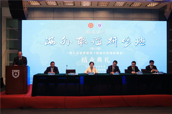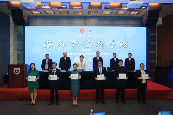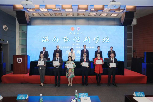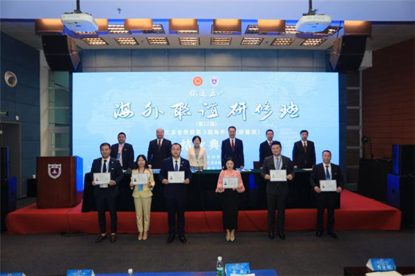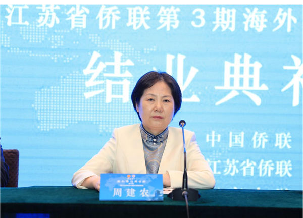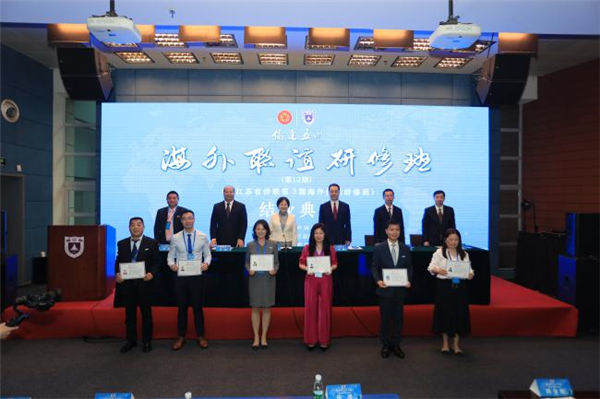 7月7日下午,由中国侨联和江苏省侨联共同主办、南京大学承办的中国侨联第十二期“侨连五洲·海外联谊研修班”——暨江苏省侨联第三期海外侨领研修班结业典礼在南京举行。中国侨联副主席、江苏省侨联主席周建农出席典礼,中国侨联联谊联络部副部长、一级巡视员朱柳出席并讲话,南京大学党委统战部常务副部长王洪涛代表南京大学致辞,南京大学终身教育学院院长韩顺平与来自29个国家的近50名海外侨领出席典礼。江苏省侨联副主席刘标主持典礼。