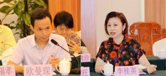 省侨联副主席李桂英(右)、欧曼琛(左)在座谈会上畅谈感受