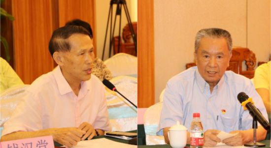 省侨联原党组书记周经纬(右)、省侨联原巡视员邢福孝(左)在座谈会上分享体会