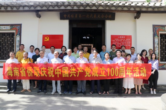 为庆祝中国共产党成立100周年,深入开展党史学习教育,引导侨联党员干部和侨界群众学史明理、学史增信、学史崇德、学史力行,推动侨联工作高质量发展,6月21日,海南省侨联召开庆祝中国共产党成立100周年海南侨胞代表座谈会,组织学习了习近平总书记关于侨的重要论述,参观中共琼崖一大旧址,观看南侨机工宣传片和中国侨界杰出人物、海南兴隆热带花园董事长郑文泰先生专题片。海南省侨联党组书记、主席黎才旺,副主席李桂英、欧曼琛,党组成员、秘书长李诚,琼籍海外侨胞、归侨侨眷、侨商、南侨机工眷属代表,省侨联机关干部、退休干部以及下属社团代表等约50人参加活动。