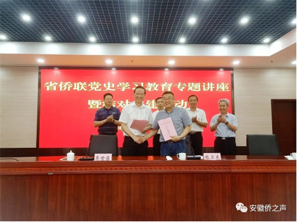 会上,李世蕴与陈卫东签订了《安徽省归国华侨联合会与安徽省新四军历史研究会结对共建协议书》。