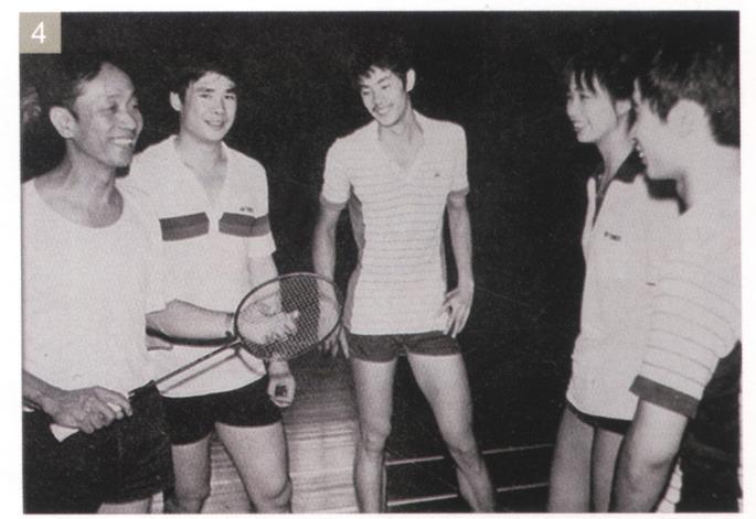图4:中国羽毛球队总教练王文教(左一)和队员在一起