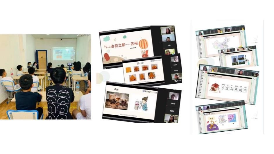温州大学“侨之桥”教学团队面向西班牙博思语言学校的线上线下混合教学、法国华人进出口商会中文学校的zoom平台教学、希腊雅典中文学校的classin平台教学