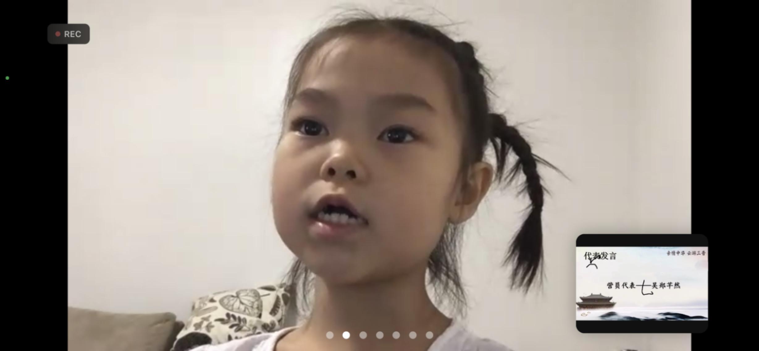 营员代表吴郑芊然发言:山西是中华文明发祥地之一,我希望通过参加这次网上秋令营,云游炎帝故里,感受炎帝文化的魅力。