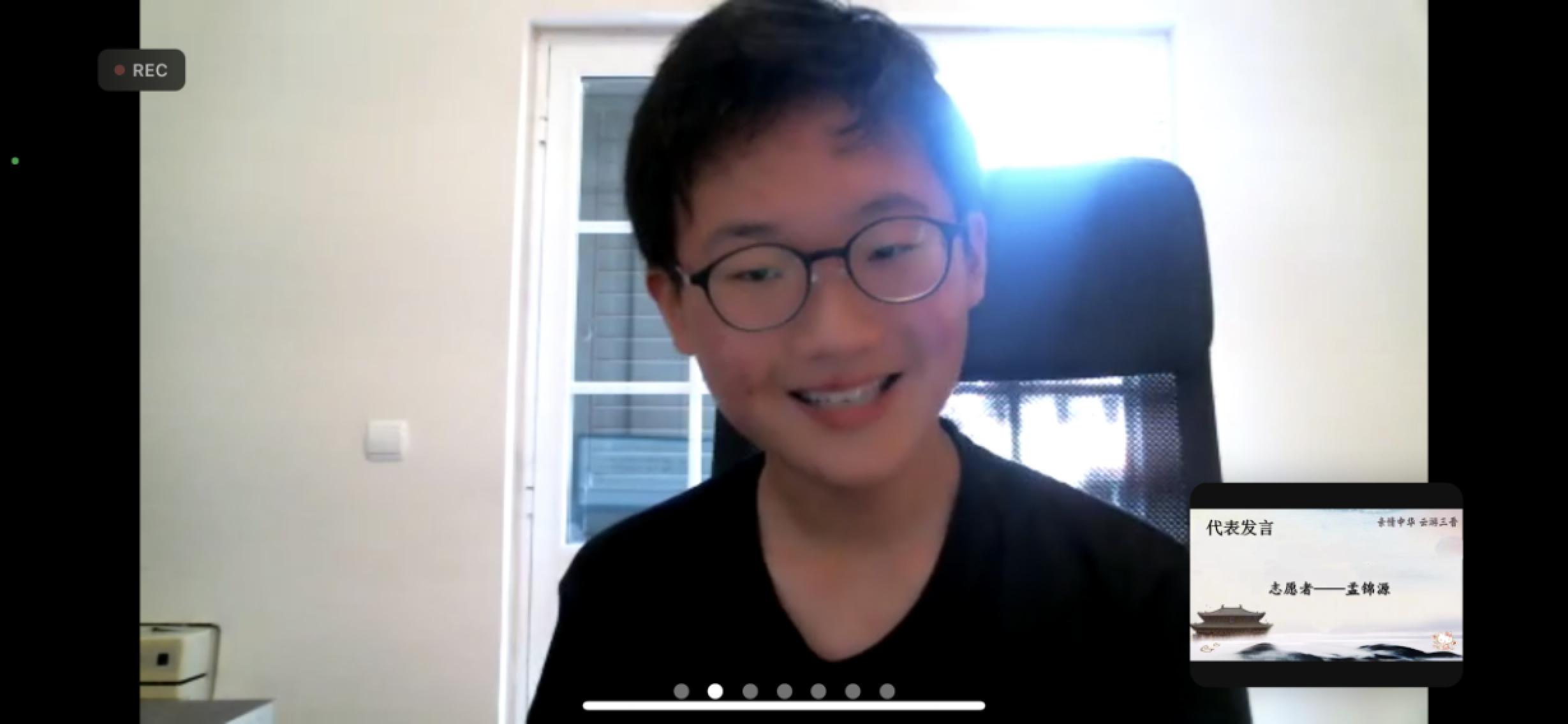 志愿者代表孟锦源发言:感谢中国侨联、山西省侨联、高平市侨联、里斯本中文学校搭建平台,帮助大家了解山西旷世悠久的历史文化。作为志愿者,接下来的15天,我们会为同学们创造一个积极向上、团结友善的学习环境,为秋令营的成功举办作出最大努力。