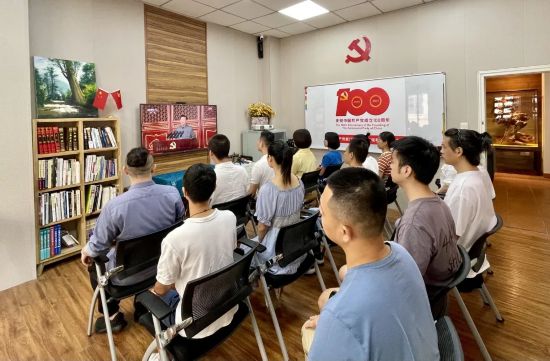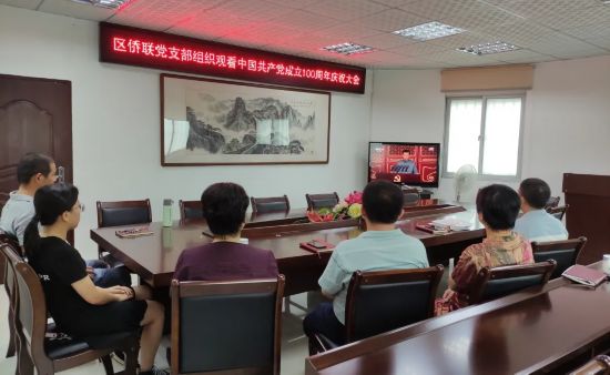 思明区侨联青委会组织委员集中收看庆祝中国共产党成立100周年大会,大家目不转睛地注视着电视画面,聆听习近平总书记慷慨激昂的讲话,现场不时响起热烈的掌声。