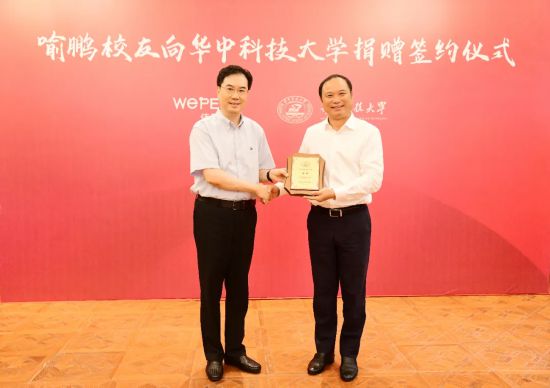 喻鹏表示,自己与夫人作为华科校友,同时岳父岳母都是华科教师,一家人都与华科有着解不开的缘分,如今能为华科发展助力,是自己应尽的责任。他本人作为一名曾经的物理教师,虽已离开了教育行业,但一直高度关注教育事业的发展。他表示,兴国安邦源于教,希望通过此次捐赠,能为战略性新兴产业相关学科的学生、教师、科研等提供奖励资金,同时伟鹏集团将与华中科技大学开展紧密合作,为培养创新创业人才、助力科技成果转化提供舒适的环境和优质的服务。