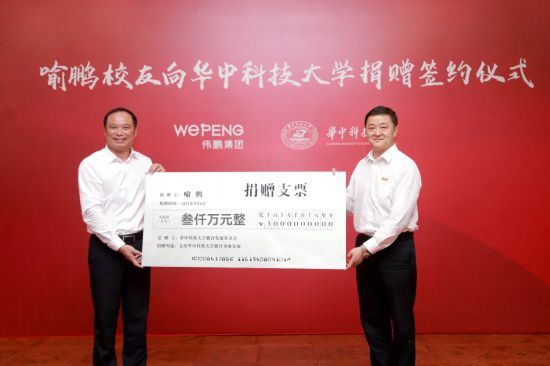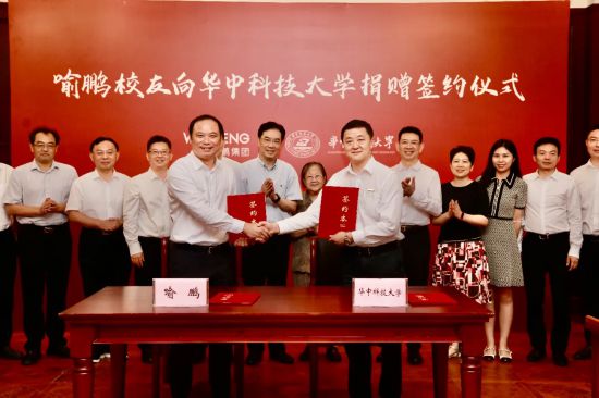 9月6日,“喻鹏校友向华中科技大学捐赠签约仪式”在华科梧桐语问学中心明义楼问道厅隆重举行。华中科技大学党委书记邵新宇、副校长许晓东等校方领导出席签约仪式,湖北省政协常委、中国侨商联合会常务副会长、湖北省侨商协会会长、海外楚商联合会会长、湖北省侨联副主席、伟鹏集团董事长喻鹏作为捐赠人,出席本次签约仪式并致辞。