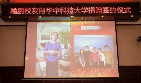喻鹏夫人、华科校友梁向女士及身在美国的家人通过视频表示,此次捐赠他们感到非常自豪。梁向女士和家人都流淌着华工的血液,愿此次捐赠伟鹏集团与华中科技大学携手并进,共赴美好未来。