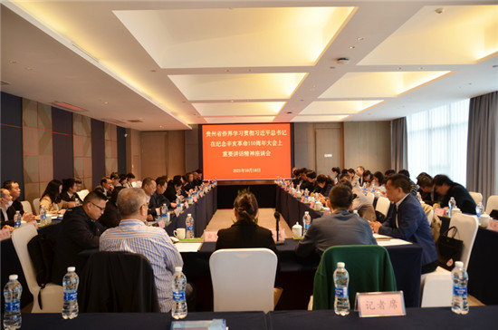 10月18日上午,由贵州省侨联、贵州省侨务办共同举办的贵州侨界学习贯彻习近平总书记在纪念辛亥革命110周年大会上讲话精神座谈会在贵阳召开。会议由省侨联主席吕虹主持,省委统战部侨务工作处处长成德义代表省委统战部常务副部长、省侨务办主任王茂爱出席会议并讲话,省委党史学习教育第五巡回指导组副组长谌莉萍,省人大外事侨务委员会原主任、省侨联专家咨询委员会主任王礼全,省侨联副主席陈新伦、副主席兼秘书长李立出席会议。各市(州)侨联、部分县(市、区)侨联负责同志,省侨商会、省青创会、省侨联法顾委、省侨联专家咨询委员会,在黔海外侨胞、归侨侨眷代表和省侨联机关全体干部共50余人参加会议。