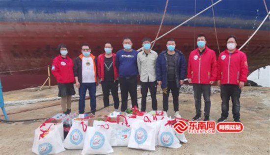 阿根廷华人义工团队长何雄明受中国驻阿根廷大使馆委托,向船员们致以亲切问候和美好祝愿,并向船员赠送了月饼及过节食品,让远在祖国两万公里外的同胞也能感受到节日的氛围。同时,提醒船员同胞在阿根廷期间一定要做好疫情防护工作,若有需要可随时联系义工团队。