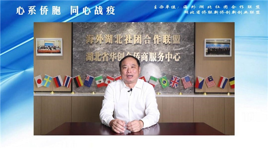 湖北省侨联副主席、中国侨商联合会常务副会长、海外湖北社团合作联盟主席、伟鹏集团董事长喻鹏代表主办方致辞。他表示,当前国际疫情防控形势依然严峻复杂,中国"早发现、早报告、早隔离、早治疗"科学防治措施,成功应对了新一轮疫情。为帮助广大海外华人华侨、湖北籍海外同乡等群体全面了解德尔塔等新冠变异病毒,向广大侨胞和海外友人分享中国战疫经验,指导大家科学预防,海外湖北社团合作联盟、湖北省侨联新侨创新创业联盟联合举办此次直播活动,相信在国际社会的携手努力下,一定会早日战胜疫情。