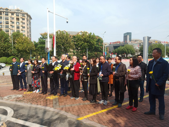 采访团一行还来到延乔路,缅怀革命先烈陈延年、陈乔年。在延乔路上,鲜花环绕着路牌,每束花上,都有各界人士写下的真挚话语。采访团一行深受感动,他们用镜头记录下感人的卡片内容,写下数十篇新闻稿件,表达对革命先烈的敬仰与追思。安徽省侨联党组成员、专职副主席兼秘书长杨冰向海外华文媒体采访团介绍了“延乔路”设立背景和组织侨界青年开展缅怀学习的有关情况。