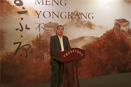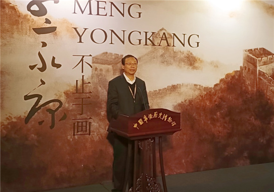 臧杰斌馆长在致辞中指出,华侨华人美术家们的作品既有“传统性”又具“异域性”,在酣畅淋漓的油彩下蕴含着令人沉醉的东方意韵,笔端流露出在海外生活所理解和熏染的西方浪漫主义色彩。孟永康先生是具有潜力的青年艺术家,他的海外游学经历使他的作品注重中国传统美术哲学和西方美术写实造型相融合,传神人物写生与浩瀚自然探索相融合,创新绘画材料与严谨构图效果相融合,对祖国壮美山河的炙热情感(如作者笔下的长城、黄河)和独特绘画风格相结合,自成一派。在新时代,只有把跨越时空、超越国度、富有永恒魅力、具有当代价值的文化精神弘扬起来,才能不断提高国家文化软实力,推动建设社会主义文化强国。