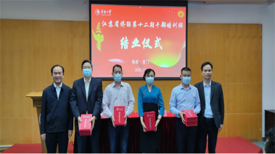 本期培训班结业仪式上,省侨联二级巡视员、办公室(组织人事部)主任(部长)李发勇与华侨大学继续教育学院副院长李泽楼共同为学员代表颁发结业证书,并进行了培训小结。部分学员代表进行了交流发言。张中明深感此次培训虽然时间简短,但安排紧密、内容丰富,通过培训在学懂弄通中加深了理解,在接受新知识中开阔了视野,在沟通交流中增进了友谊。顾振华、季晓路纷纷表示,回到工作岗位以后,用培训所学的内容增强干事办事激情,为建设“强富美高”现代化新盐城贡献侨智侨力。