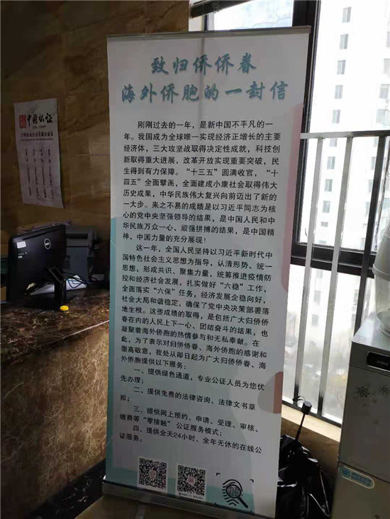 加大宣传力度,提高知晓率。为了提高东湖公证归侨侨眷服务站在广大归侨侨眷、海外侨胞中的知晓率,让广大归侨侨眷、海外侨胞知晓并了解服务站的服务举措,东湖区侨联、东湖区公证处不断加大工作宣传力度,拓宽信息宣传渠道,通过公众号发布致归侨侨眷海外侨胞的一封信,营造了良好的服务氛围。