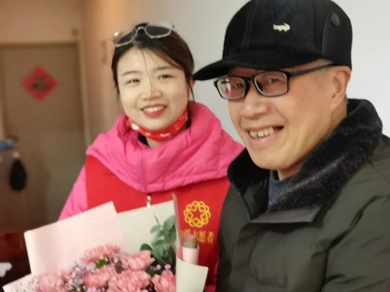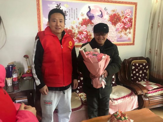 宁侨志愿者艾科朗克公司董事长秦轶轩、华设设计集团股份有限公司副主任工程师吴岚为老人送上了鲜花和生日祝福。吴玉联老人吹灭了生日蜡烛,高兴地说:“谢谢你们,家里好久没有这么热闹了!”