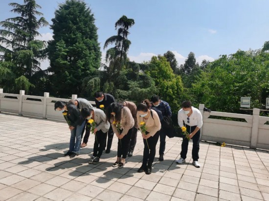 在庄严巍峨的烈士纪念碑下,全体党员干部庄重地向革命烈士纪念碑鞠躬,深切缅怀革命先烈,向为革命事业牺牲的烈士敬献鲜花,向他们表达无尽的哀思和敬意。