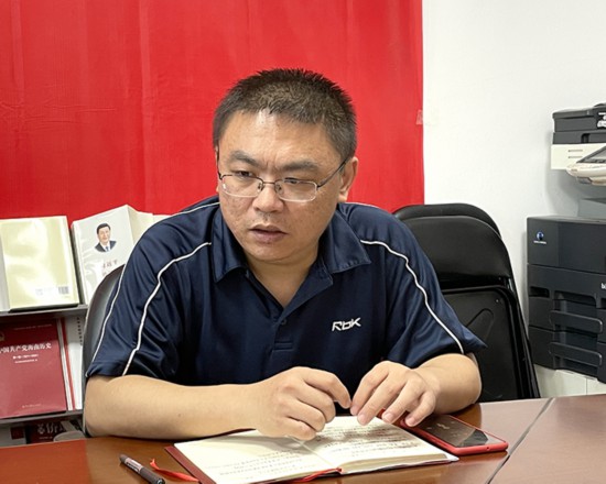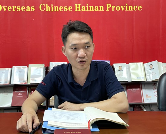 海南省侨联办公室党支部党员、办公室二级主任科员王斌在会上交流心得体会