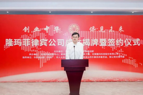 “集聚侨智连五洲,助力光伏下南洋”。为积极推动无锡融入“一带一路”建设,扩大无锡企业参与国际产能合作影响,4月22日,无锡市侨联组织“创业中华·侨见未来”无锡隆玛菲律宾公司成立揭牌暨合作项目签约仪式,仪式由无锡市侨联、新吴区委统战部主办,无锡侨智创新中心、新吴区侨联、无锡隆玛科技有限公司承办。无锡市委常委、统战部部长周常青出席活动并讲话,无锡市人大副主任高亚光和无锡市政协副主席、致公党无锡市委主委吴红星共同为无锡隆玛菲律宾公司成立揭牌,新吴区区委常委、统战部部长李伟敏致欢迎词,菲律宾著名华商蔡湧植、菲律宾驻上海领事馆分别以视频和书面形式表示祝贺。