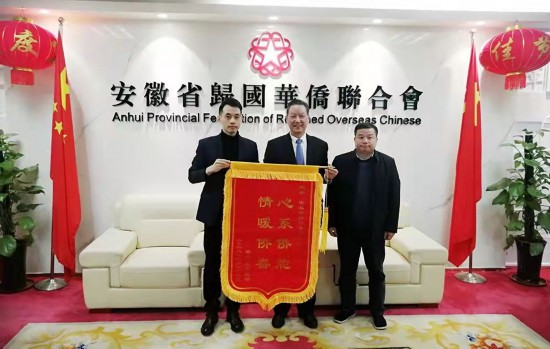 侨胞送来“心系侨胞、情暖侨眷”锦旗表达感谢之情