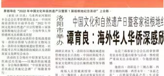谭育良接受《亚洲时报》专访时表示,中国河南省洛阳市日前举办的“2022年中国文化和自然遗产日宣传暨第一届客家祖根地纪念活动”令海外华人华侨感到无比骄傲及欣慰。