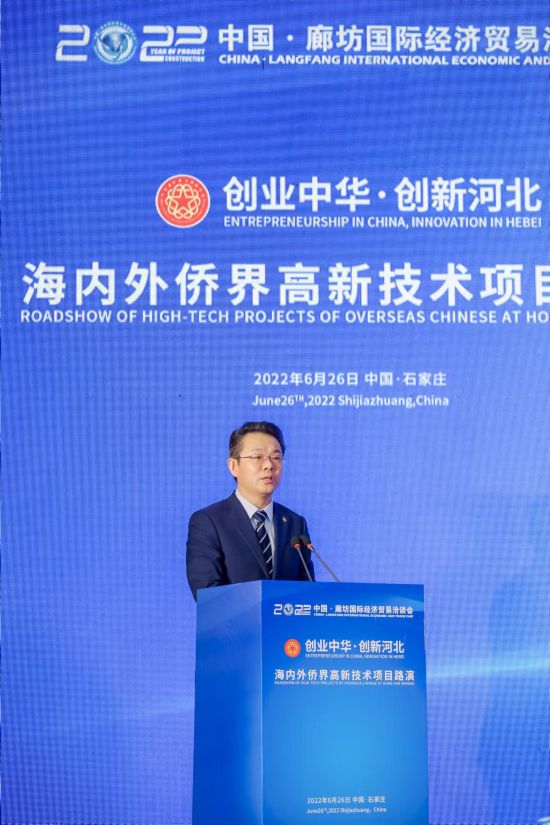 6月26日,由中华全国归国华侨联合会指导,河北省归国华侨联合会、中国侨商会、中国侨联特聘专家委员会、河北省国际华商联合会、河北省侨界专家委员会主办的2022年“创业中华·创新河北”海内外侨界高新技术项目路演活动在石家庄成功举办。本次活动是2022年中国·廊坊国际经济贸易洽谈会“创新发展”版块中重要的专场活动之一。中国侨联党组成员、副主席候选人连小敏,中国科学院院士徐国良在线上出席活动并致辞,省侨联党组书记、主席付辉东在现场出席活动并讲话。