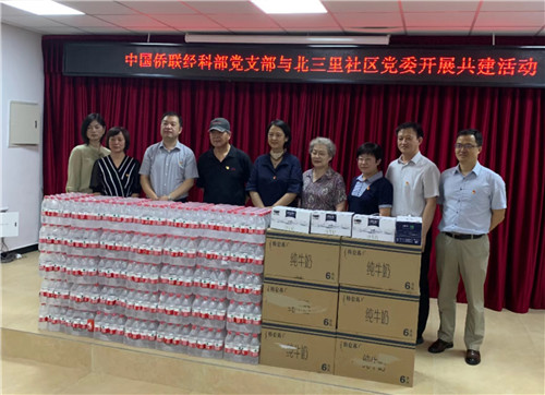 为进一步深化“学查改”专项工作,继续做好为群众办实事活动,6月28日上午,经济科技部党支部会同朝阳区侨联,前往结对共建社区——三里屯街道北三里社区慰问。支部书记赵红英、副书记祁德贵,朝阳区侨联主席黄文娟,三里屯街道副书记白少飞,北三里社区党委书记曹红芳及社区侨界代表、党员代表等参加。