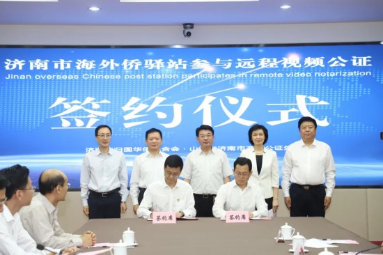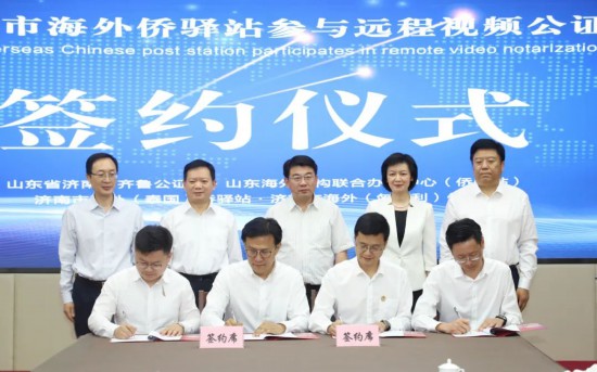 仪式上,市侨联和齐鲁公证处就推荐海外侨驿站作为远程视频公证见证处、参与远程视频公证服务签署了合作协议。