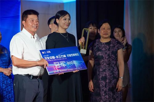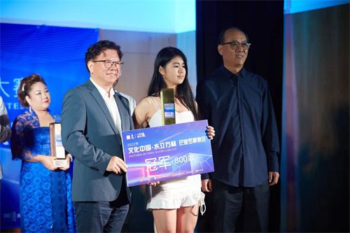 西班牙浙江总商会周志文会长,西班牙华商女企业家协会叶晓红会长为成人组亚军吴飞燕颁奖