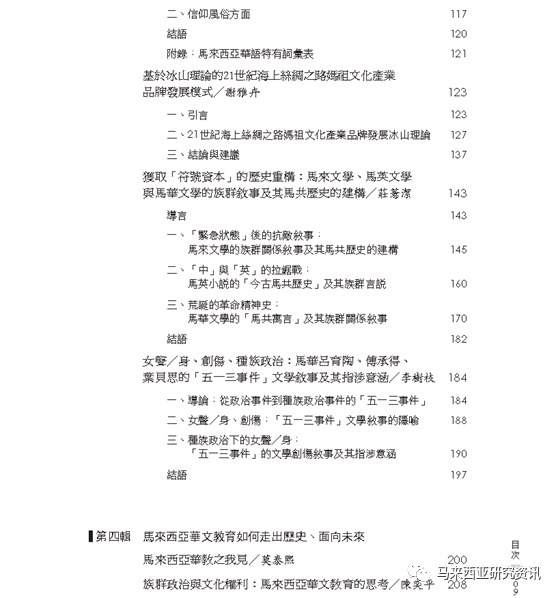 2020年时值Covid-19肆虐各地,云端会议成为知识交流的新媒介。在这场由武汉大学国家文化发展研究院主办的国际学术会议中,由海内外学者就马来西亚华人的华文教育、族群认同与多元文化展开讨论,并专设青年学者论坛,分别从思想史、民族史、文学史、政治史、民俗与语言学等不同学科背景出发,探讨与马华文化相关议题,展现了马华文化的复杂性与多元性,本书即为本次学术会议的论文集。书中分为四辑,研讨议题囊括:马来西亚近代华人文化先驱的事迹与活动,与中国的文化政治互动,马华文化历史资源的现代化转化,以及马来西亚华文教育如何走出历史、面向未来。