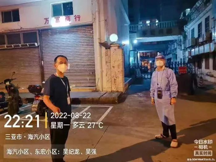 海南省侨联志愿者曹玉洲、吴纪龙夜间在海汽小区、东宏小区巡逻