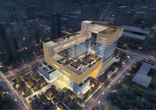 硅谷小镇科技园地标建筑“硅谷立方”效果图,目前即将封顶